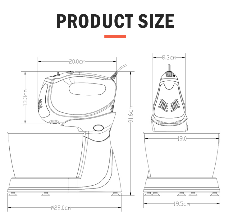 Bowl | With rotary staniless steel bowl, capacity 3000ml |