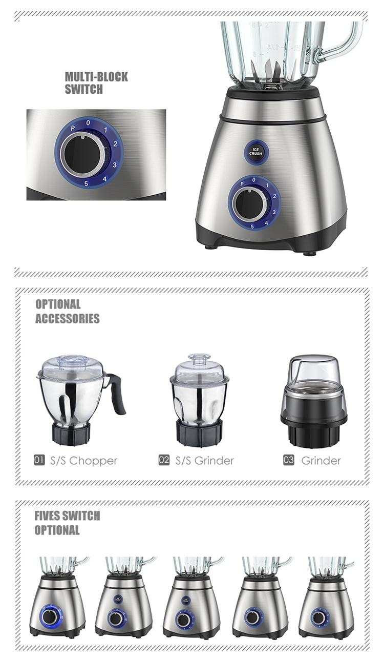 | Capacity | With 1.5L clear glass / stainless / plastic jar optional |
